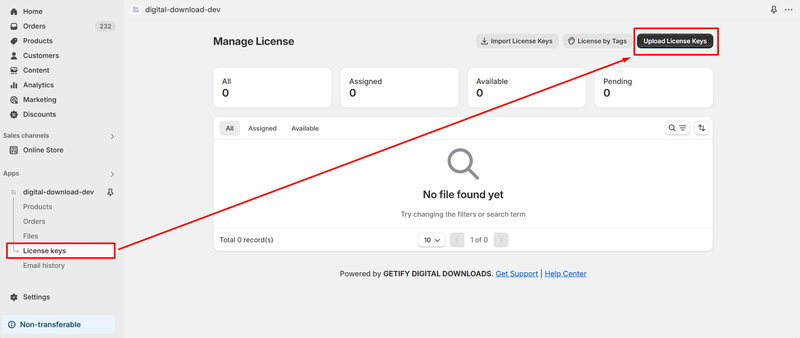 1. Go to **License Keys** > **Upload License Keys**